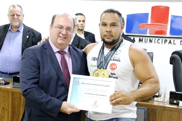 Atleta de luta de braço recebe congratulações da Câmara após vencer Arnold Sports Festival